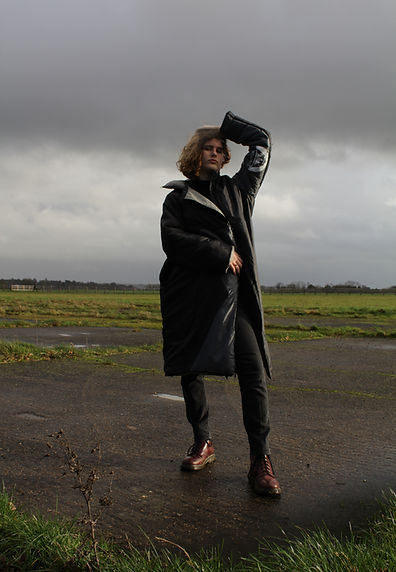 (Three photographs above) These three photographs were the final outcome of the sequential storytelling project. I wanted to create a coat for the homeless focusing on practicality and comfort. I also wanted to create a sustainable garment so I used an old sleeping bag as it is waterproof and insulated, my aim being that the coat could be worn as a coat or be used as a sleeping bag.